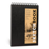 Our popular line of sketchbooks use acid-free drawing paper that is medium weight and has a vellum finish, so they are great for everything from dry media like charcoal and pencil to light washes with ink and watercolors.