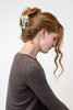 Our Bryony Claw features dark twisting leaves beneath bone white flowers encompassed by an ethereal bed of shimmering greens, pinks, and opal tones. This is an XL deep claw- it has a longer body like our long claws but with some added depth to hold even more hair!