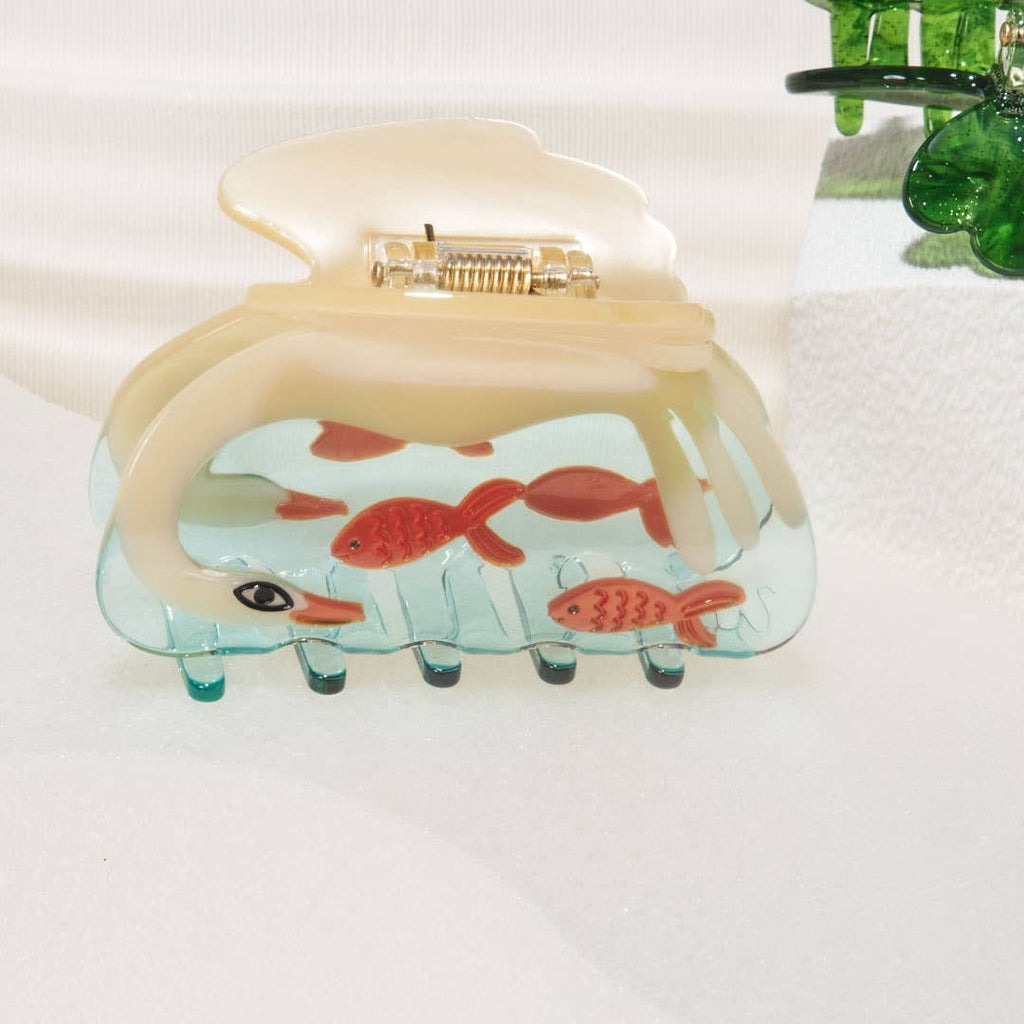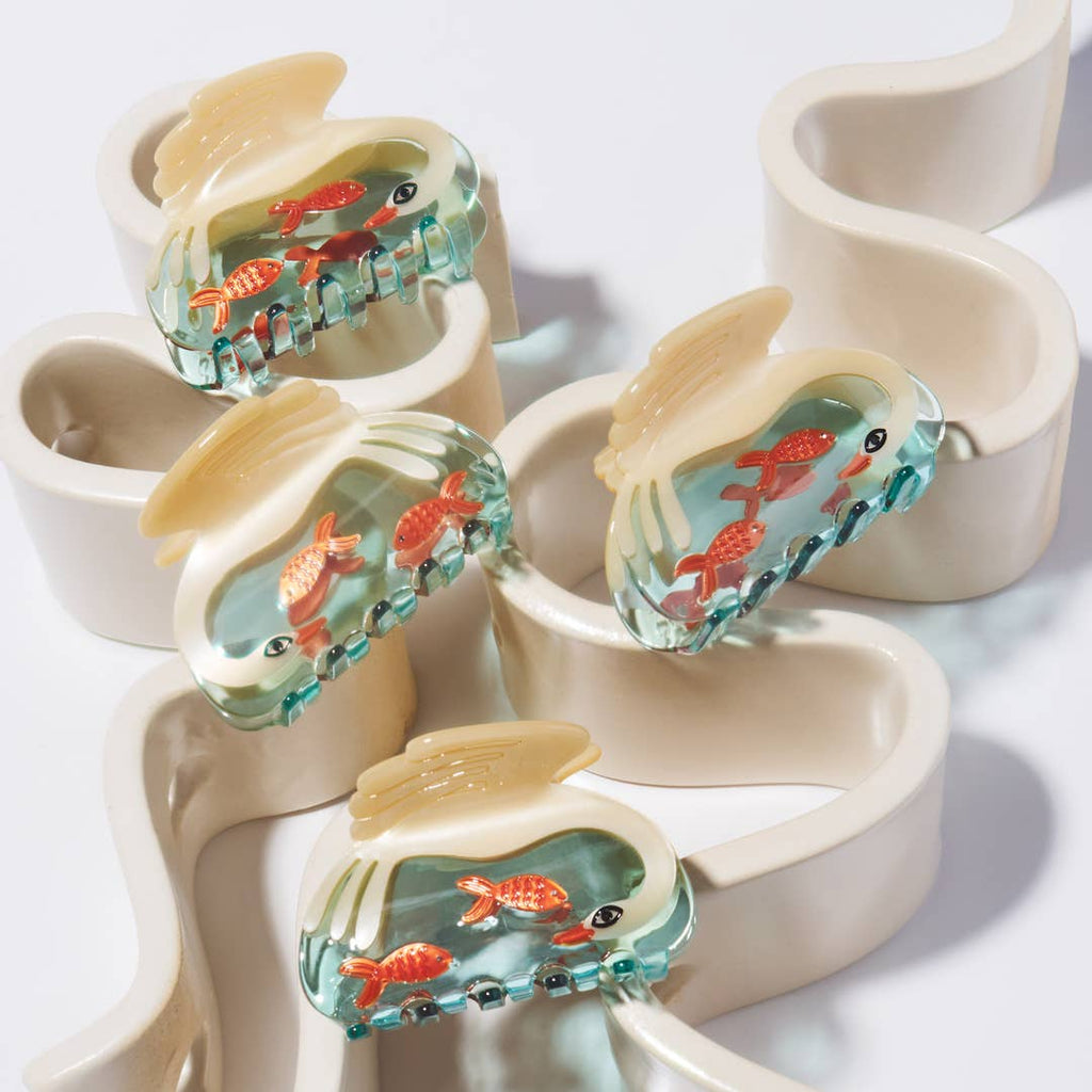 Our favorite crystal clear blue acetate lends the perfect backdrop to this miniature scene. If you love swans, check out our Cygnus claw!