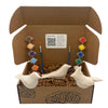 This Paint Your Own Backyard Bird Kit contains one unpainted cardinal and two unpainted, identical songbird ornaments.