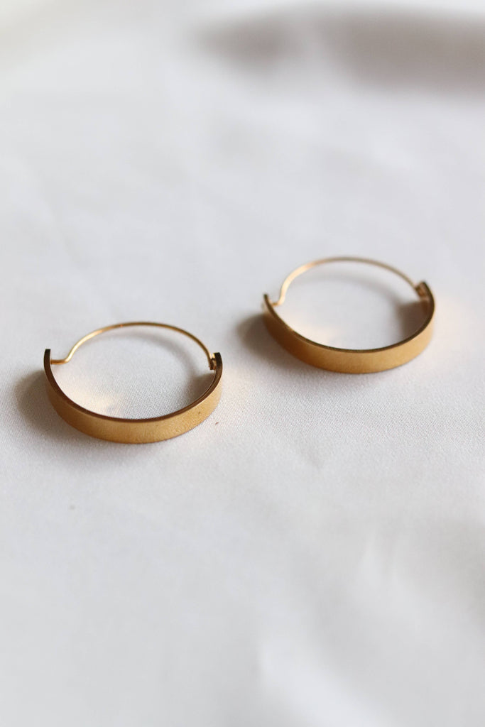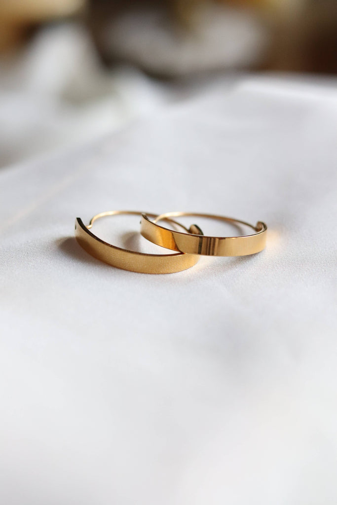 Our gold plated Edge Hoops Earrings add a unique touch to a classic design, and are made of stainless steel for added durability.