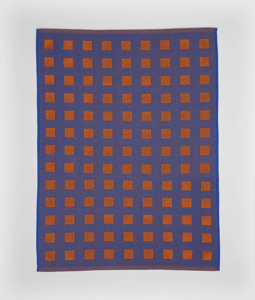 Squares Cotton Tea Towel (Burgundy/Blue)