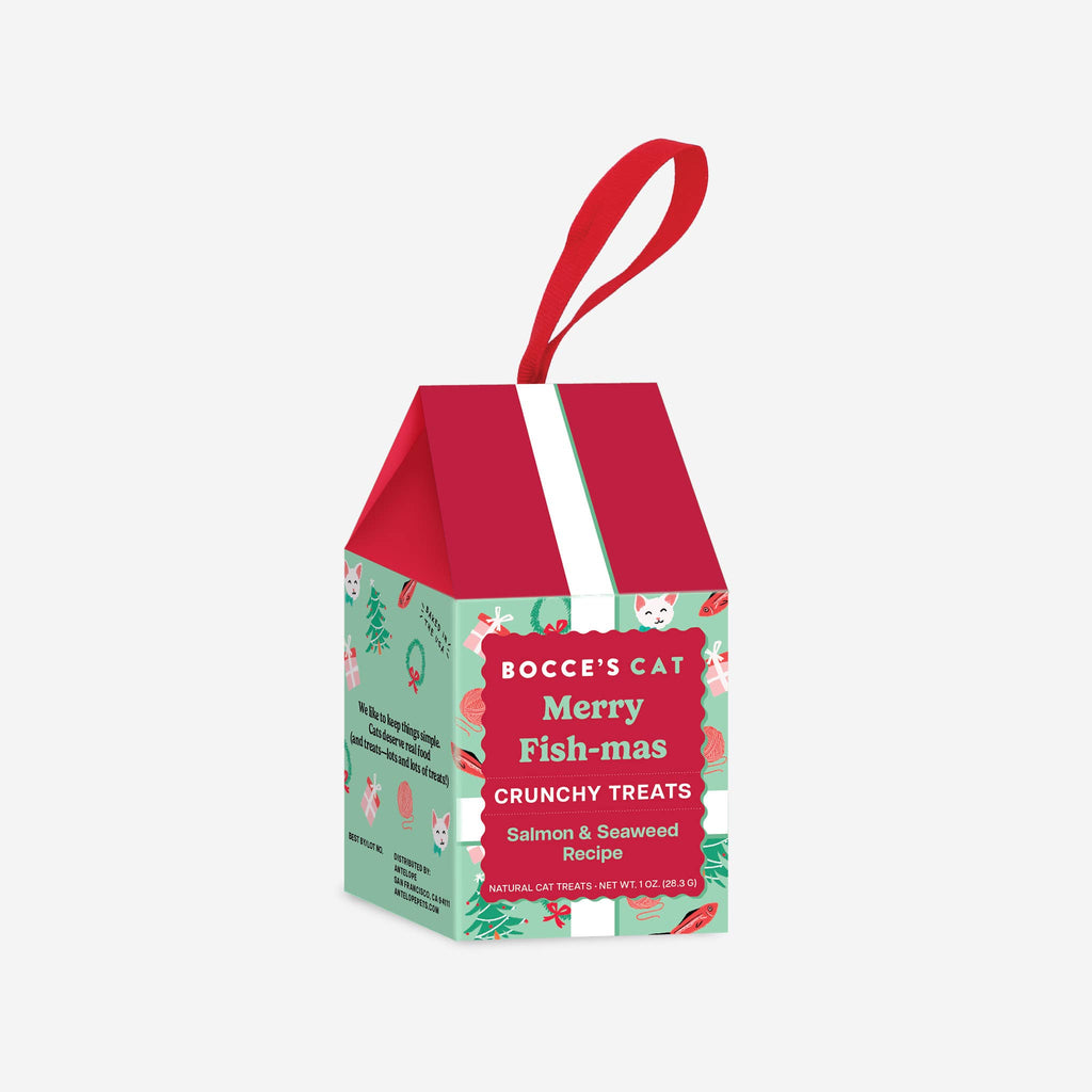 Every cat deserves a present under the tree (or in this case…ON the tree!) Our Merry Fish-Mas Ornaments are both a decoration AND they’re filled with delicious salmon and seaweed crunchy treats – talk about Christmas cheer inside (and out!)