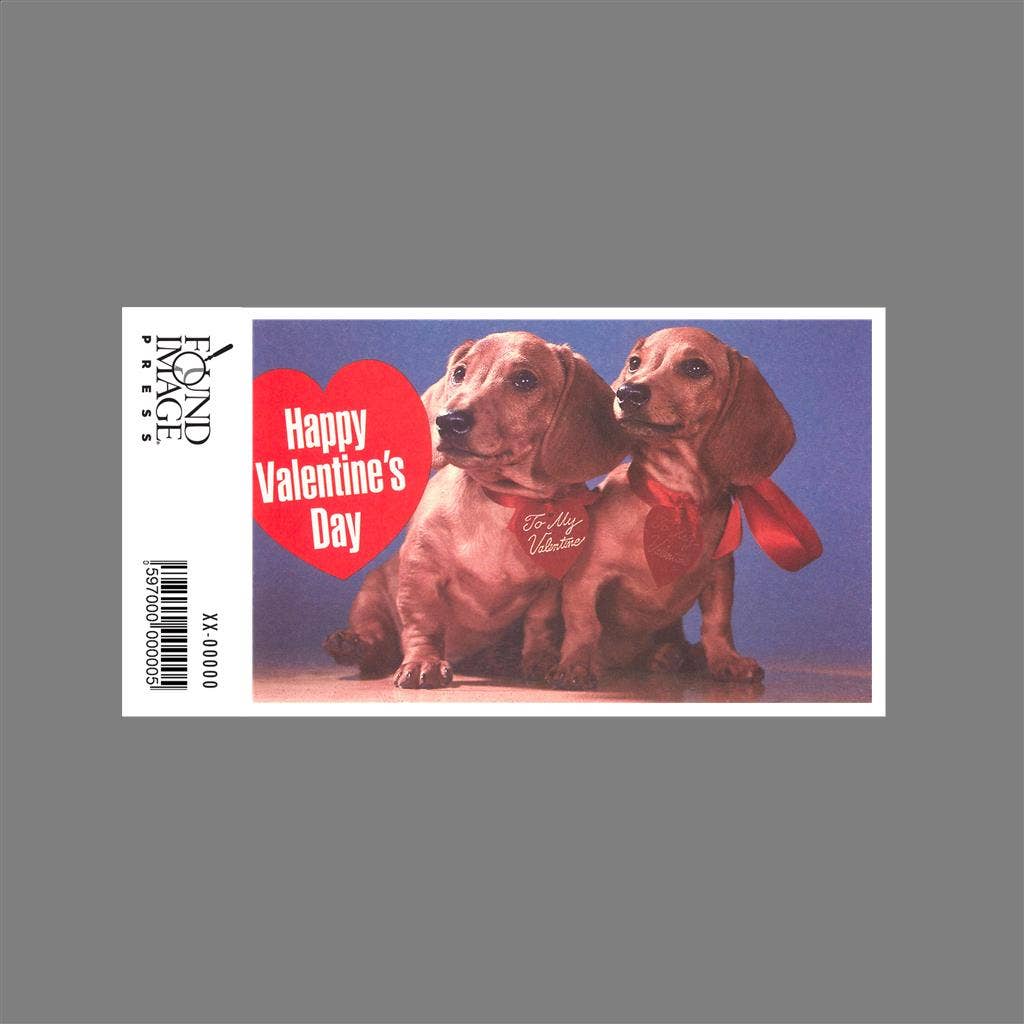 Enjoy this 3.5" x 5.5" high-quality vinyl sticker featuring an image from our Valentine’s Day collection titled Happy Valentines Day, Two Dachshunds.