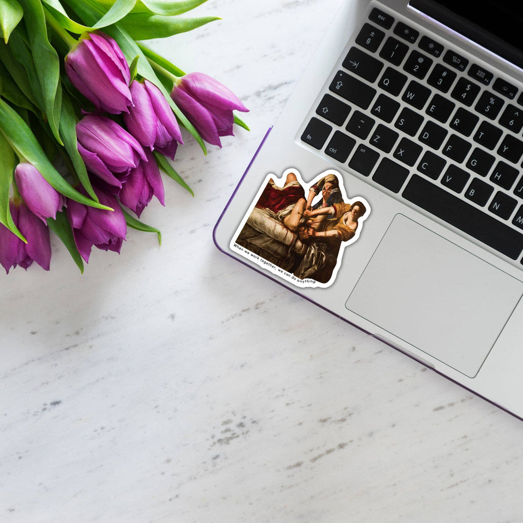 Reads: "When We Work Together We Can Do Anything" aka Besties Doing a Nice Beheading! Judith Slaying Holofernes Sticker