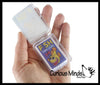 Each card set is adorably tiny and contained in a small clear plastic case that measures 2.5" x 1.75" x .75".