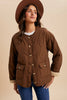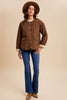 Quilted sherpa-lined puffer jacket in a rich chestnut color