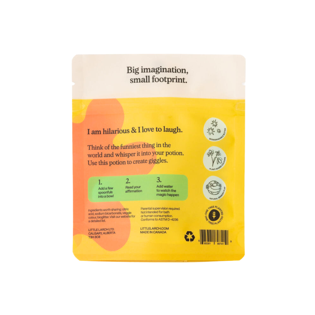 Our Silly Spell is all about giggles. Think of the funniest thing in the world and whisper it into your potion. You are hilarious! Simply add a few spoonfuls of Potion Play to a bowl or bucket, add water and watch as your potion bubbles and brews.