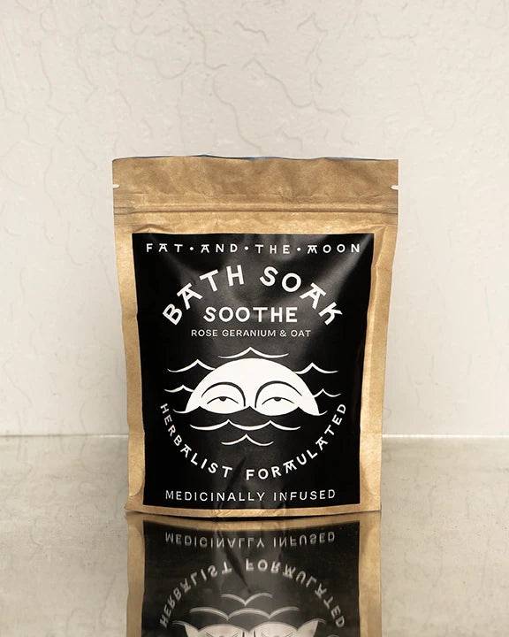 Fat and the moon is taking bath time to new depths with our trio of soaks. Bath + time = support of the rest and digest! Let yourself get specific with your soaking- under the weather, soothe and self-care.