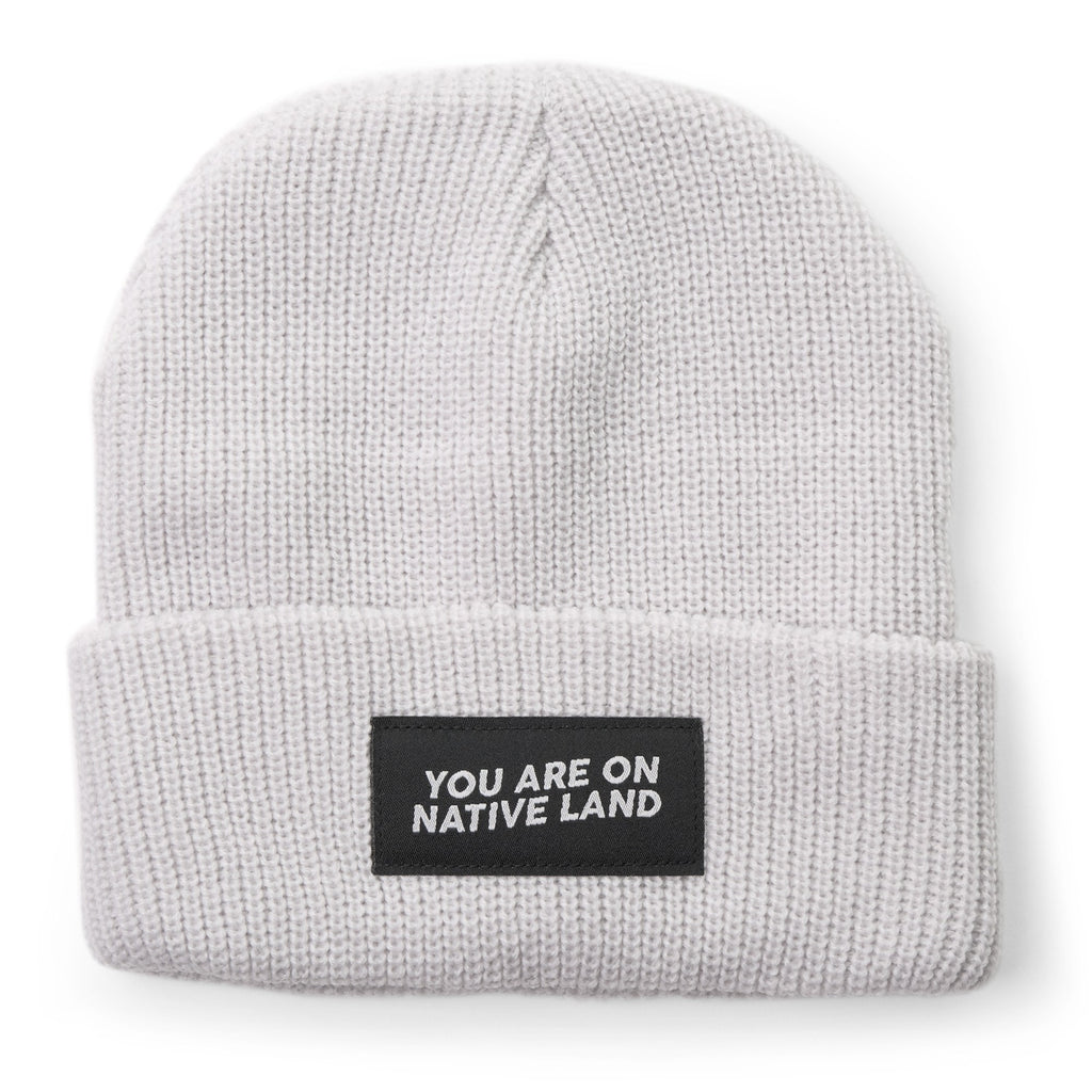 The ‘You Are On Native Land’ ribbed beanie is a winter favorite. A timeless statement intended to ignite conversation amongst non-Indigenous communities. ‘YAONL’ comes from an Indigenous perspective and the phrase is intended for everyone including the wearer.