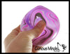 This is a very fun stress toy that is not only calming, but it also helps build hand and finger muscles and bilateral coordination. It is beyond amazing and has a super soft dough feel. You can poke and pinch it and it will retain its shape, then slowly ooze back into a cube just like a slow rise squishy would.