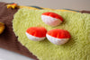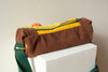 Each bag comes with a PVC banana slug zipper pull. Bags are 12 inches long with a 15 inch circumference and a 51 inch long adjustable cotton strap. Please see photos for additional measurements.