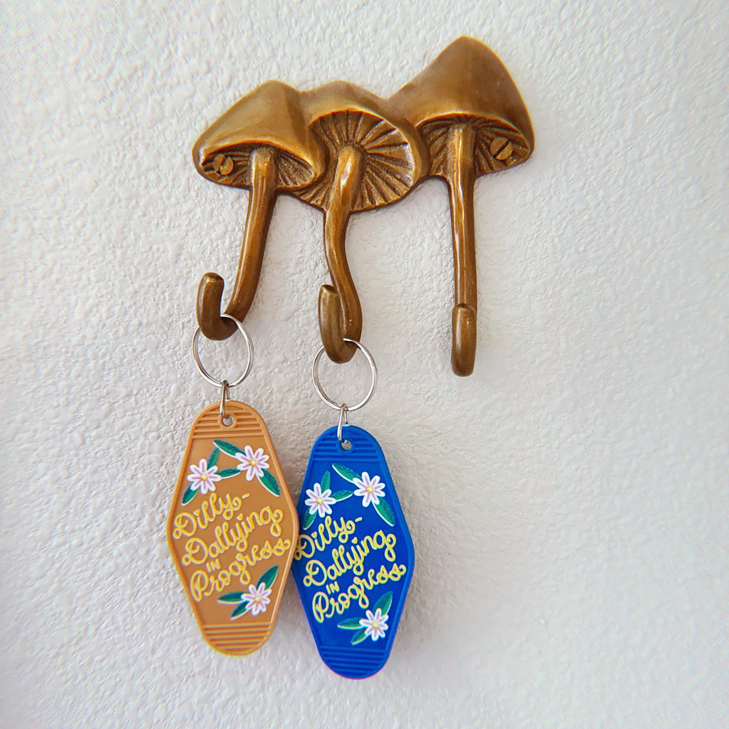 Dilly-Dallying on the DAILY😤🌸 * Motel style acrylic keychain with permanent waterproof decal * 3.5”x1.77” * Also applies to lollygagging and loitering🙂‍↔️💞