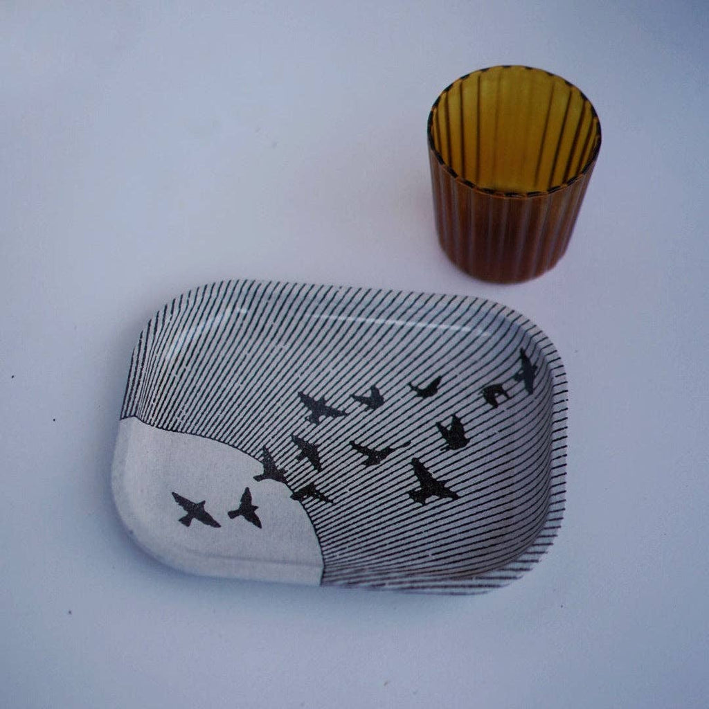 Featuring a captivating design of birds in mid-flight against a serene backdrop, this elegant and sturdy tray is perfect for adding a touch of nature-inspired charm to your space. Ideal for organizing small items or serving as a decorative piece, this tray brings a sense of freedom and elegance to any setting.