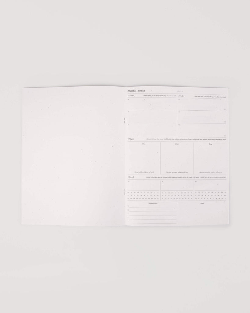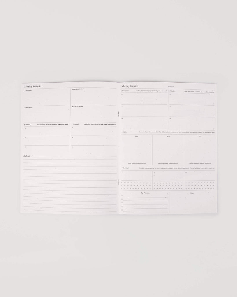 A hybrid undated planner and wellness journal, the Month Planner guides you in setting goals and achieving them through your plans.