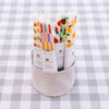 These sleek, tapered candles feature a checked pattern in a bold, bright palette that harmonizes wonderfully with the servingware, glassware and napkins to create an effortlessly joyful table.