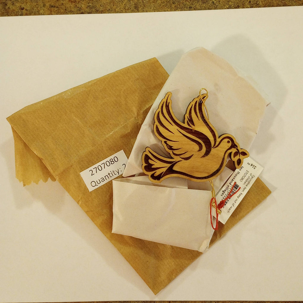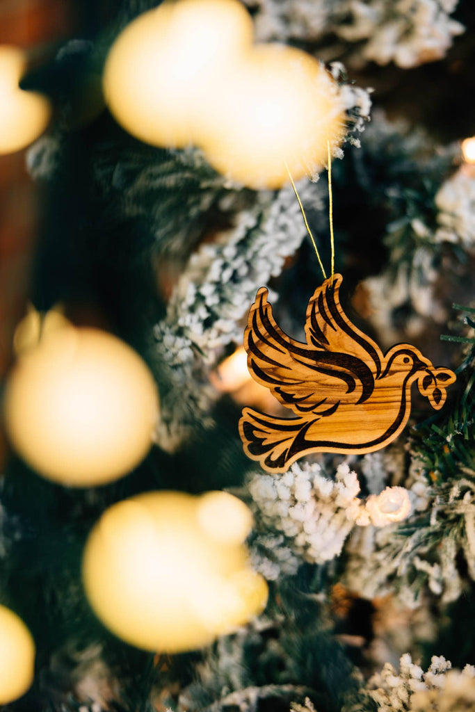 Hand carved by Bethlehem Fair Trade Artisans in West Bank, this ornament is made from locally sourced olive wood, a sustainable practice.