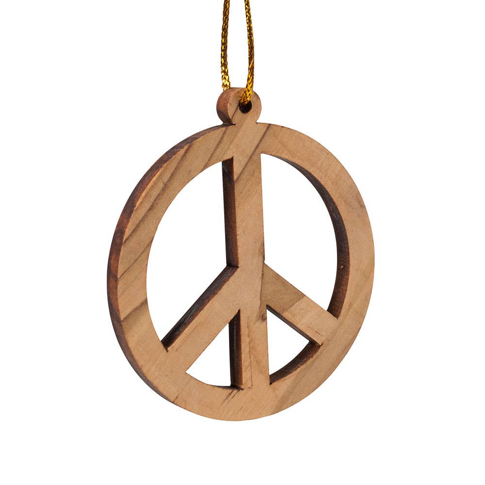Hang the Peace Symbol Ornament, handcrafted of olive wood in West Bank, and sing peace over this holiday season.