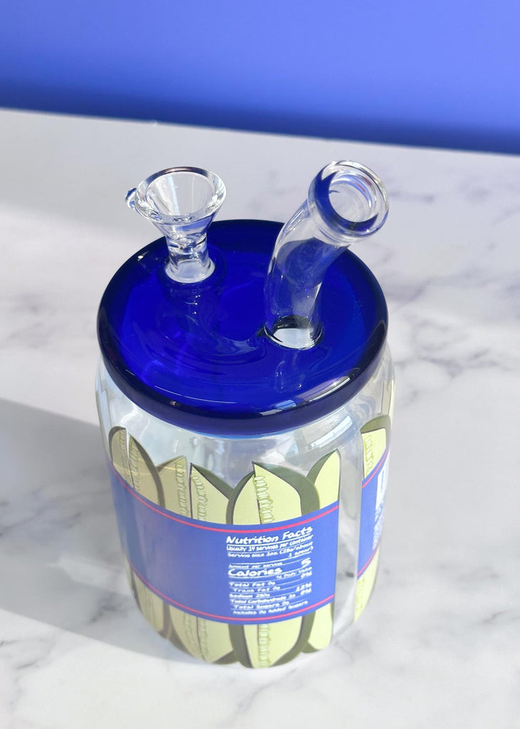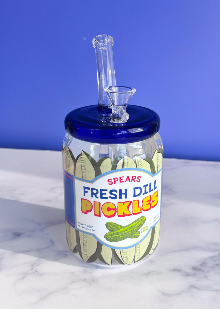 A perfect piece for the pickle lover, this bong is the shape of a real pickle jar & features a realistic looking pickle jar artwork