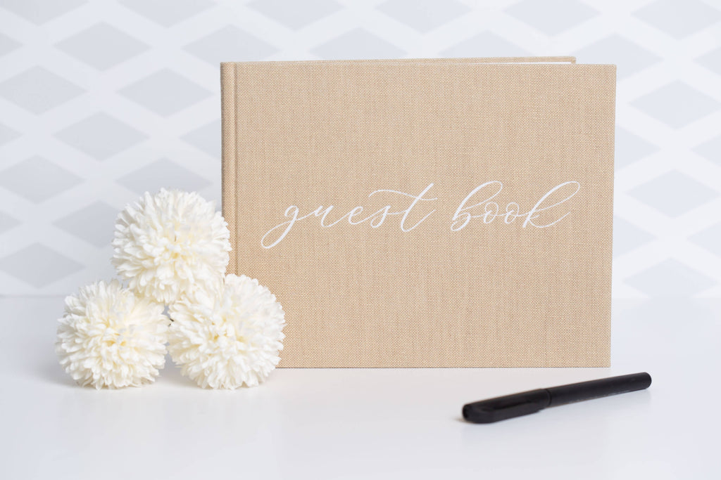 This elegant, linen guest book makes the perfect keepsake for your day.