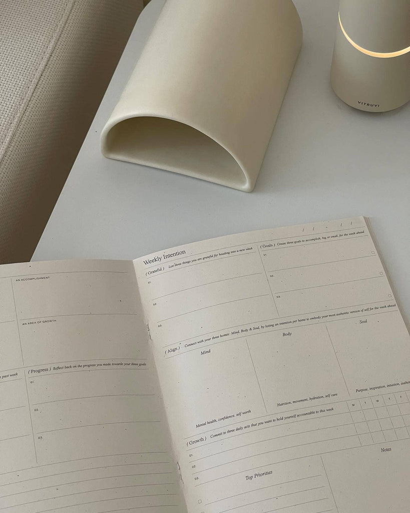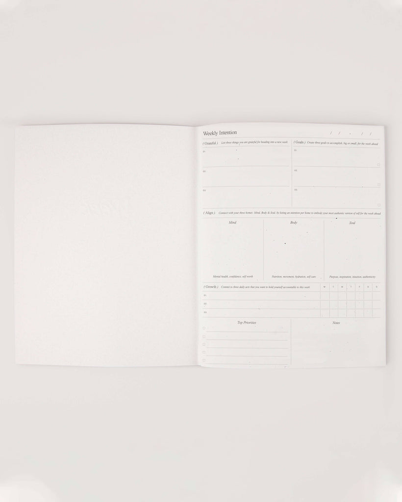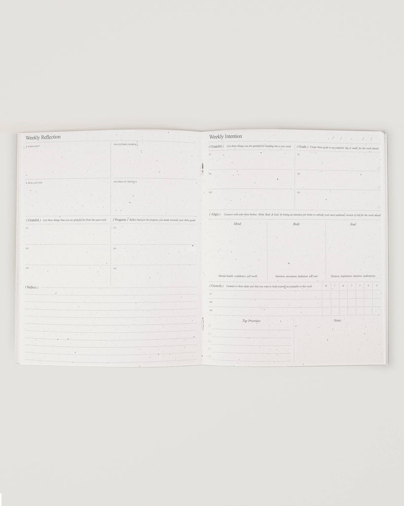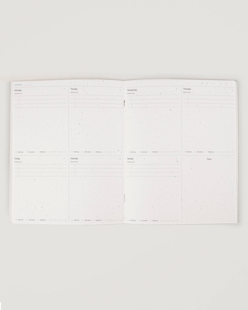 A hybrid undated planner and wellness journal, the Week Planner guides you in setting goals and achieving them through your plans.